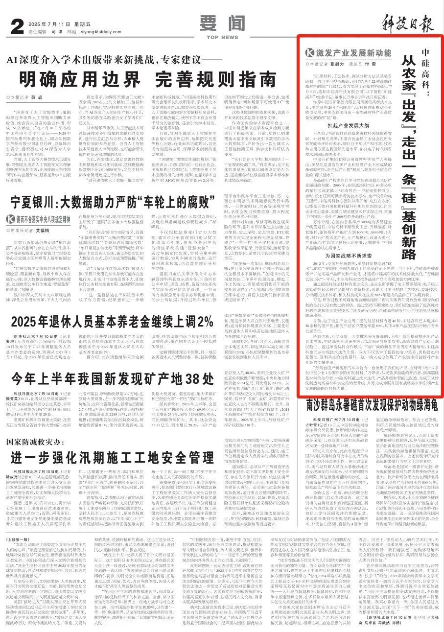 • [2025-07-11] 《科技日報》報道中硅高科“硅”基創新路